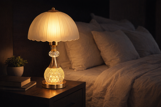 Crystal Table Lamp — Luxury Petal Shade with Dimmable Warm Glow